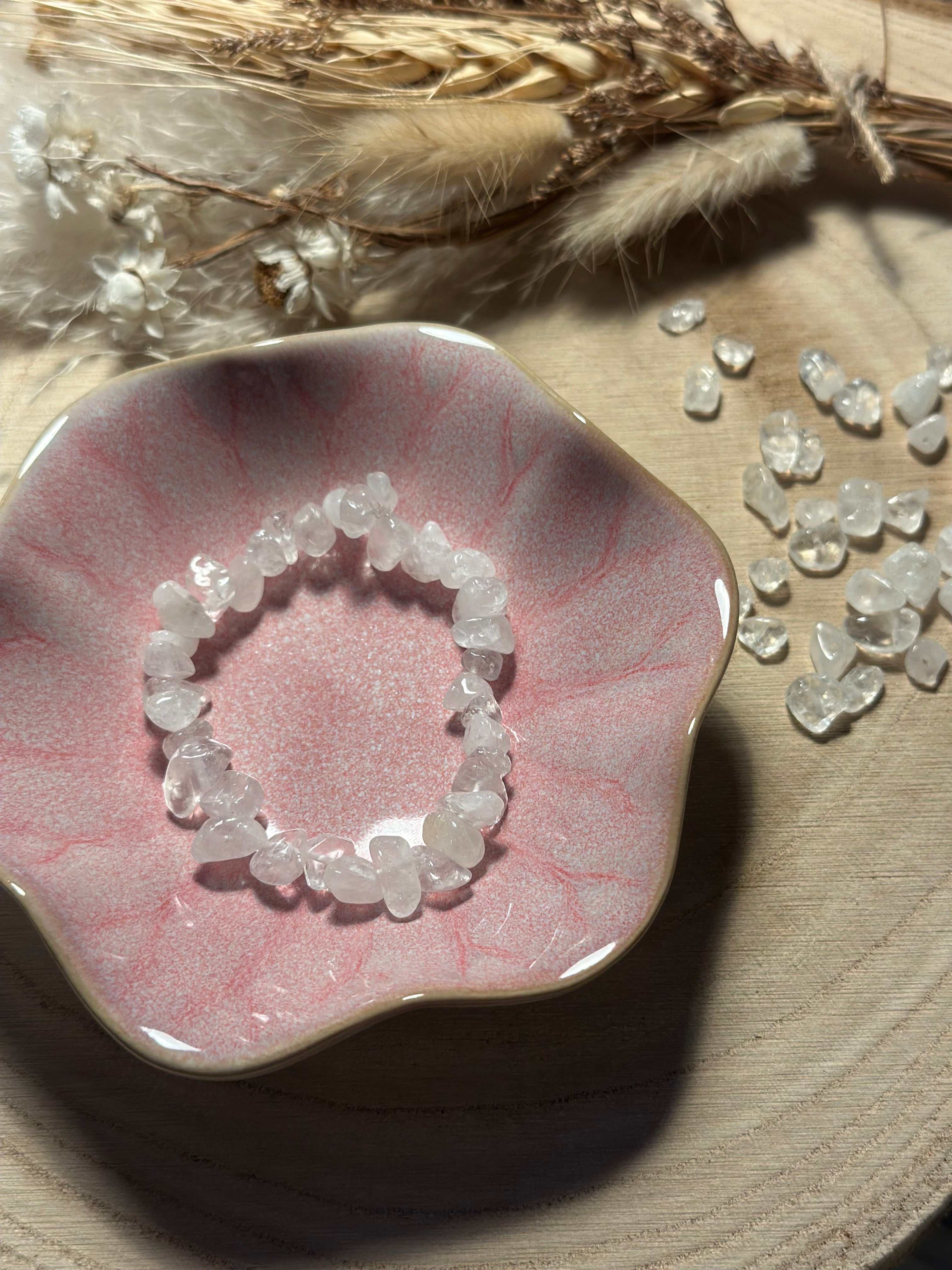 Rosenquarz Splitterarmband – Handgemachtes Edelsteinarmband